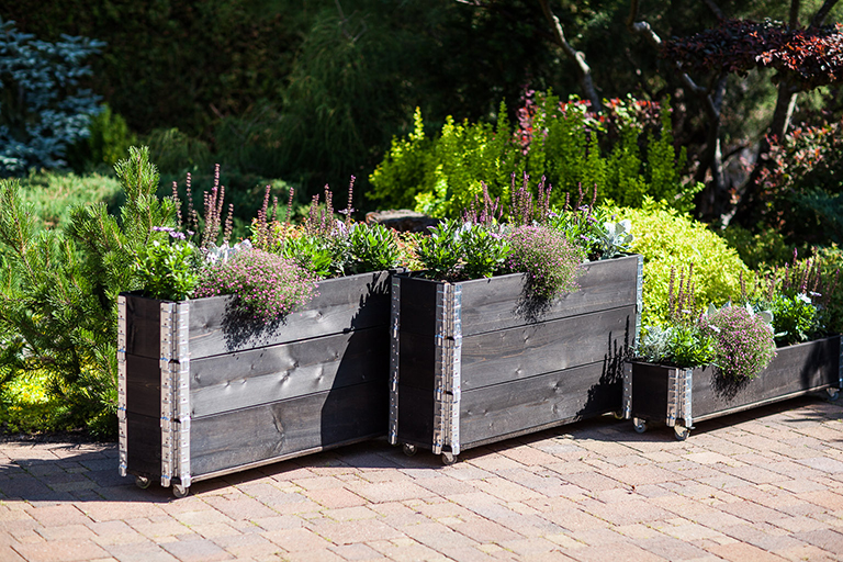 KRONUS gardening solutions featuring high-quality wooden planters and garden products